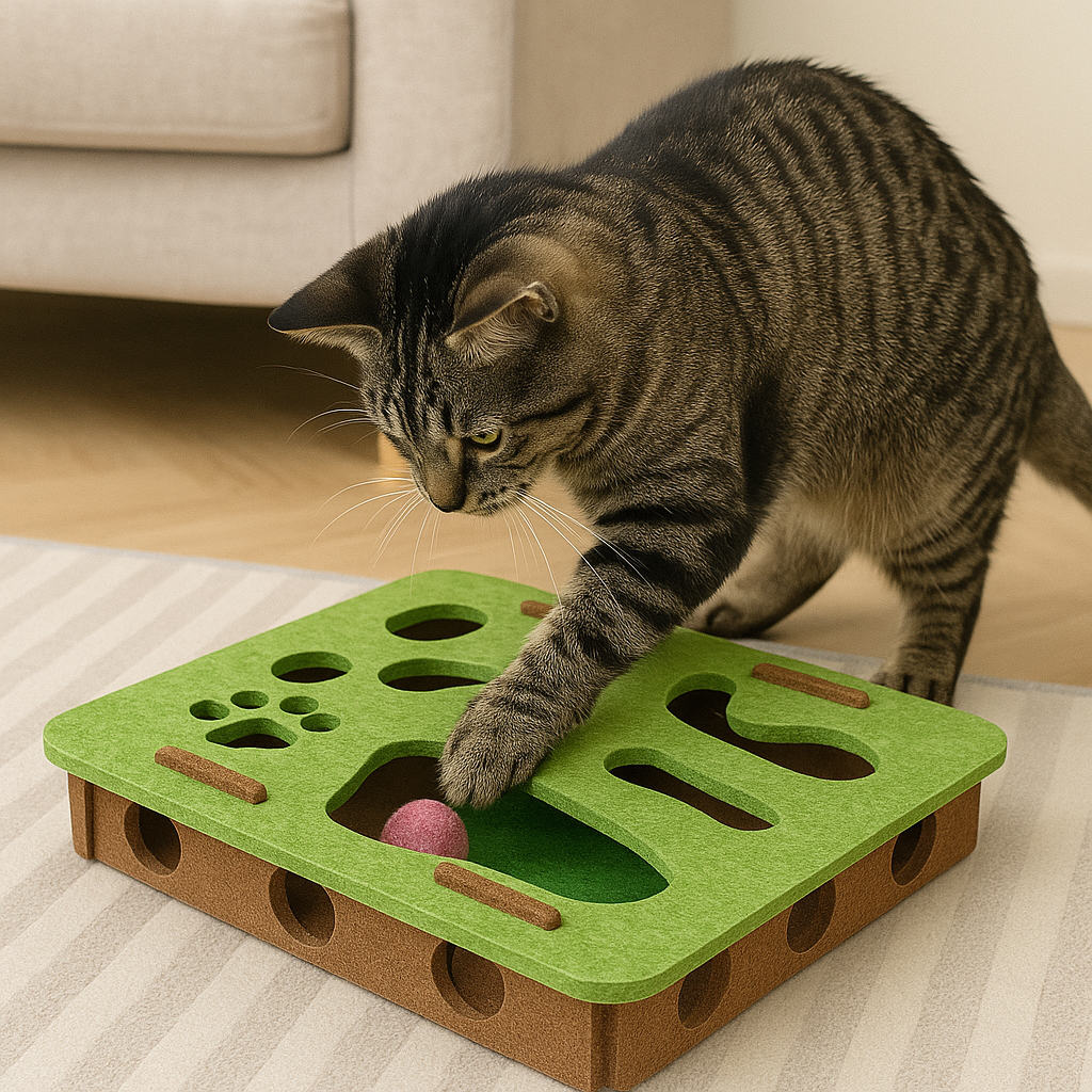Šī interaktīvā mīklu kastīte ar bumbiņām ir tieši tas rotaļlietu veids, kas nodarbina kaķi uz ilgu laiku un ļauj tai izlikt enerģiju dabiskā, drošā veidā.