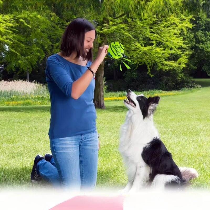 Bumba reaģē uz skaņu un kustību: pietiek ar vieglu pieskārienu ar purnu vai ķepu, un tā sāk ripot, mainīt virzienu un aicināt suni dzīties tai pakaļ. 🎯